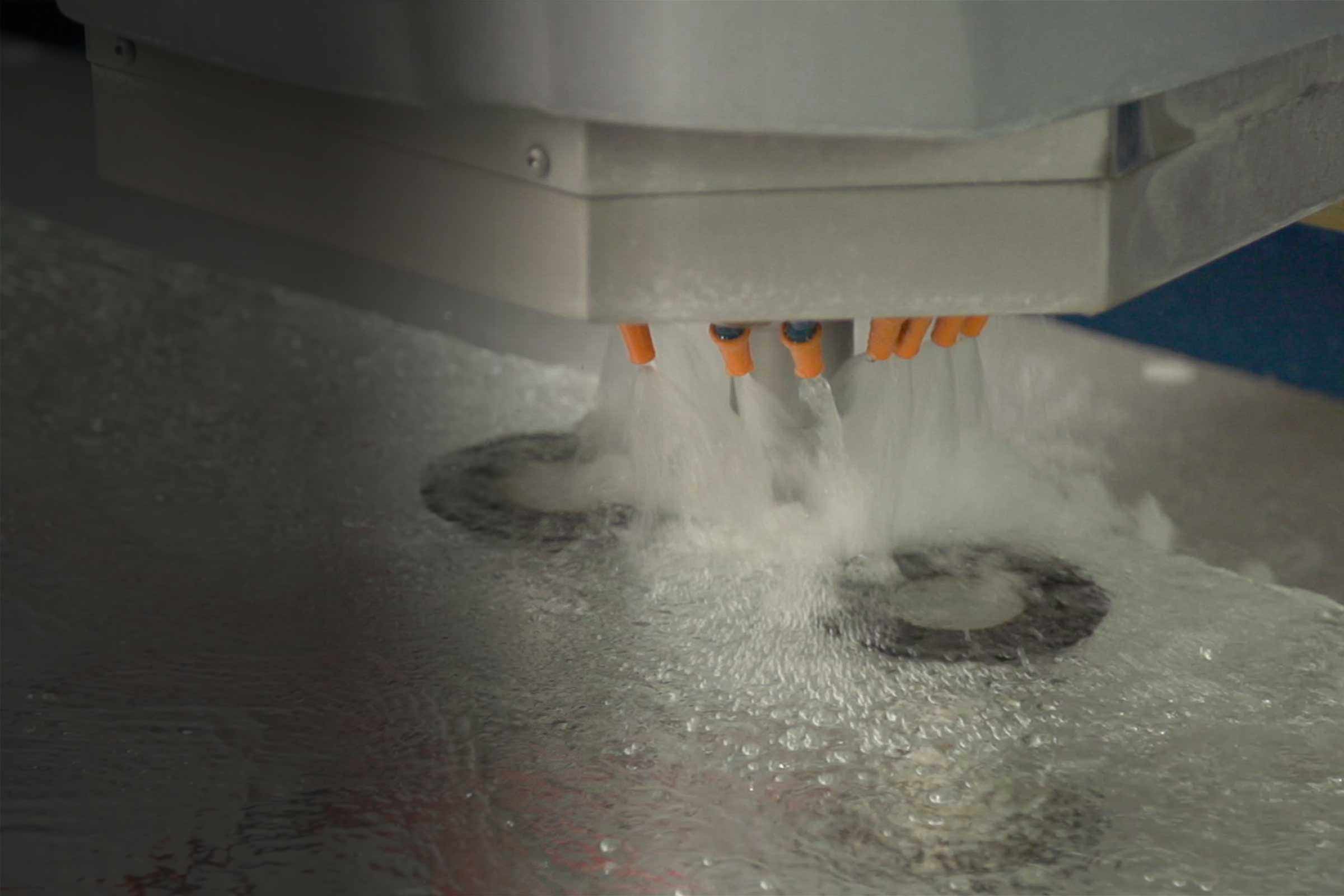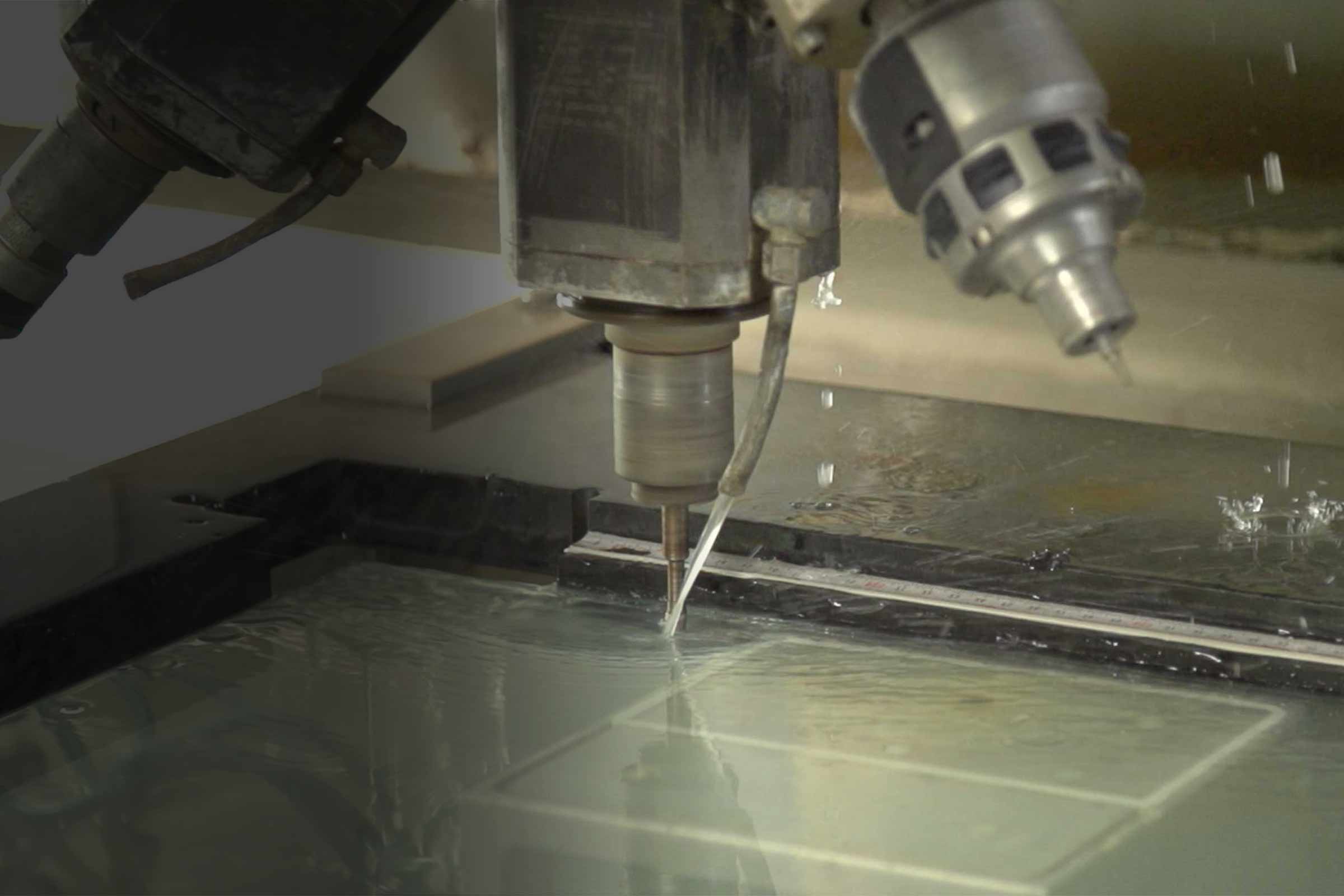 Nachdem das Glas gewaschen und die Kanten mit einem Diamantschleifer poliert wurden, erfolgen die weiteren Bearbeitungsschritte wie zum Beispiel die Bohrungen für die Befestigung der Beschläge. Auf der speziell für TARDIS entwickelten Maschine TS 4000 werden die auf den hundertstel Millimeter genauen Hinterschnitt-Bohrungen gesetzt.